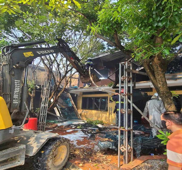 Tại hiện trường, lực lượng chức năng sơ bộ xác định: do nổ vật lý tủ sấy nguyên liệu nên đã gây cháy và lan ra các khu vực xung quanh dẫn đến sản sinh nhiều khói, khí độc. Chỉ huy chữa cháy đã nhanh chóng chỉ đạo CBCS sử dụng thiết bị bình thở chuyên dùng triển khai đồng loạt các mũi tấn công, đồng thời huy động máy xúc phá dỡ cấu kiện, tạo đường tiếp cận sâu vào các điểm cháy bên trong khu vực nhà xưởng để tổ chức chữa cháy và cứu nạn cứu hộ.