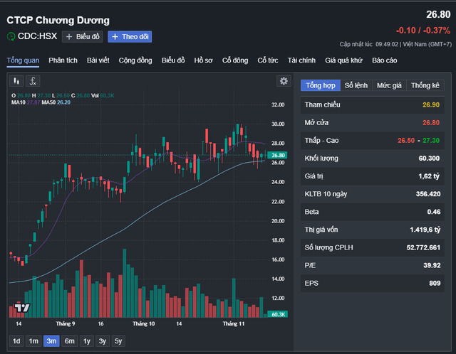 Tạm tính giá cổ phiếu CDC theo phiên giao dịch đóng cửa ngày11/11/2025 là 26.550 đồng/cổ phiếu, ước tính bà Hoàng Linh đã chi khoảng gần 8tỷ đồng để mua vào số lượng cổ phiếu nêu trên.