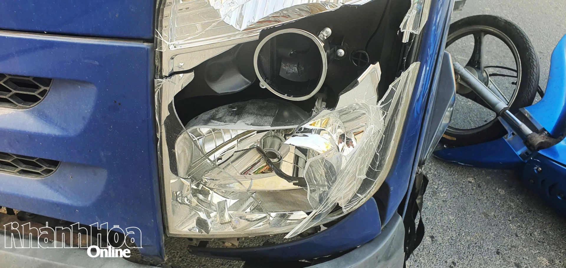Đèn xe tô tô bị vỡ sau va chạm với xe máy.