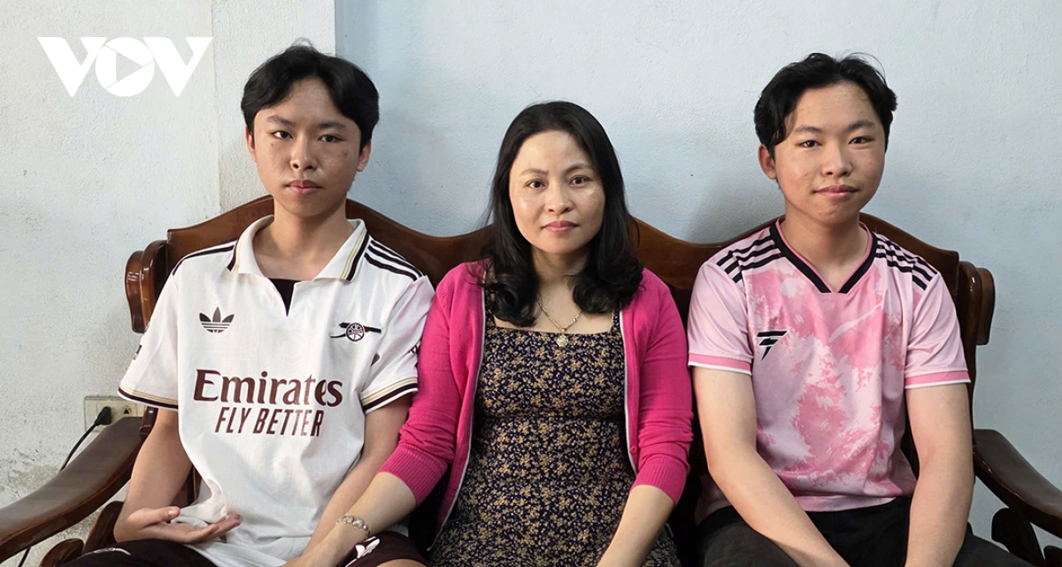 Hai anh em sinh đôi Trương Thanh Huy và Trương Thanh Hoàng và mẹ ruột tại nhà riêng