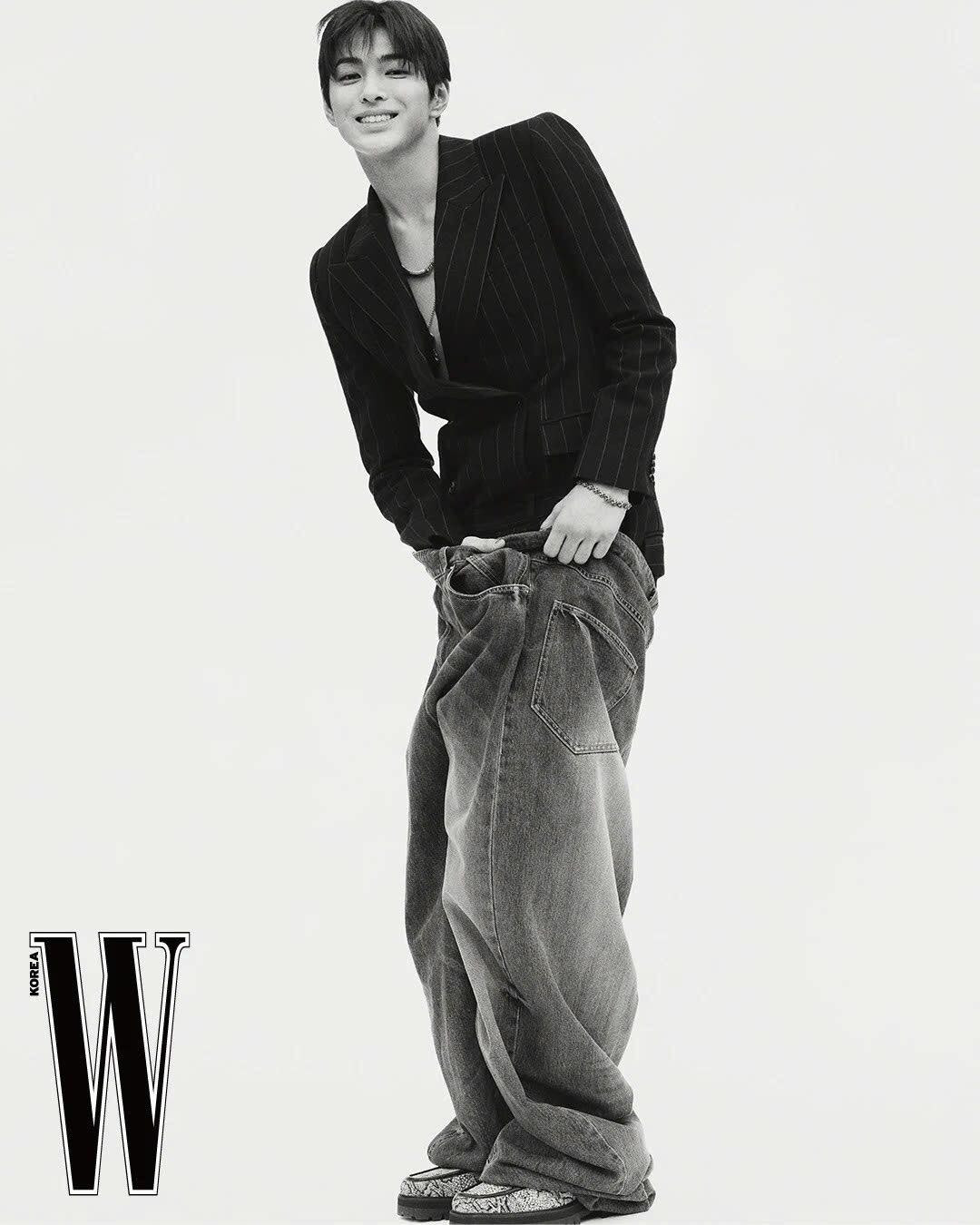 Nam idol sinh năm 2009 mặc thiết kế đặc trưng của nhà mốt JUUN J trong BST Thu Đông 2025.