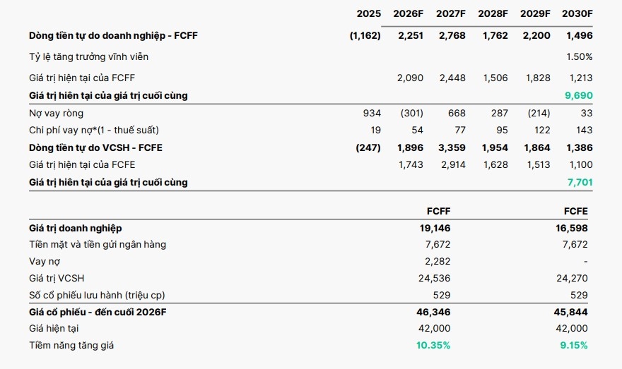 Nhằm đánh giá toàn diện triển vọng kinh doanh, và ưu thế đặc thù của doanh nghiệp so với ngành cùng kỳ vọng từ thị trường, phương pháp DCF và P/E đã được Công ty Chứng khoán KAFI sử dụng để đưa ra khuyến nghị nắm giữ đối với cổ phiếu của CTCP Phân bón Dầu Khí Cà Mau (DCM) với mức giá mục tiêu 47.109 đồng (tăng 9.50%).