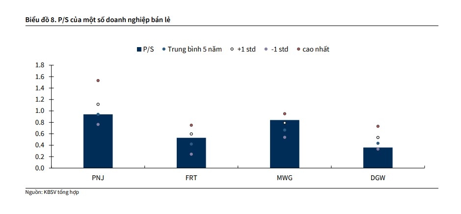Với bối cảnh 2026 khởi sắc, các cổ phiếu với mức định giá ngang hoặc dưới mức trung bình P/S 5 năm như PNJ, FRT, DGW đều còn cơ hội đầu tư với mức upside trên 15%. Ngoài ra, nhà đầu tư có thể có thể chờ đợi các nhịp điều chỉnh ngắn để mở mới/gia tăng vị thế cho MWG.
