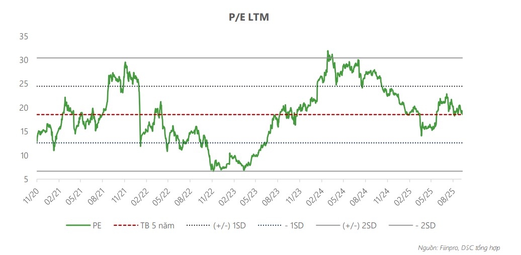 Quý 3/2025, CTCP Thế Giới Số (DGW) ghi nhận doanh thu 7.391 tỷ đồng (+19% so với cùng kỳ năm trước) và lợi nhuận sau thuế 168 tỷ đồng (+39% so với cùng kỳ năm trước) Lũy kế 9 tháng năm 2025, doanh thu của DGW đạt 18.641 tỷ đồng (+15% so với cùng kỳ năm trước) và lợi nhuận sau thuế (LNST) đạt 393 tỷ đồng (+30% so với cùng kỳ năm trước), hoàn thành lần lượt 73% và 71% kế hoạch năm. DSC đưa ra mức dự phóng doanh thu là 25.560 tỷ đồng (+16% so với cùng kỳ năm trước) và LNST là 510 tỷ đồng (+14% so với cùng kỳ năm trước) cho DGW trong năm 2025. Nhờ kỳ vọng tăng trưởng mạnh ở hai mảng thiết bị văn phòng và hàng gia dụng, cùng với động lực từ chu kỳ nâng cấp sản phẩm ở mảng phân phối máy tính, DSC đưa ra khuyến nghị mua đối với cổ phiếu DGW với giá mục tiêu 56.000 đồng.