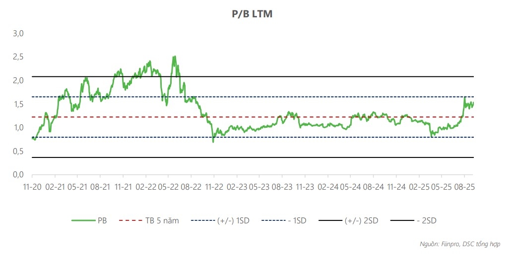 Tiềm năng tăng trưởng tín dụng năm 2026 đạt trên 30%. Tính đến 30/9/2025, tăng trưởng tín dụng đạt 28,5% (cùng kỳ năm 2024 tăng 8,7%) - cao top đầu toàn hệ thống (trung bình ngành tăng 13,4%). Động lực đến từ phân khúc khách hàng doanh nghiệp (+43% kể từ đầu năm) và khách hàng cá nhân tăng 11%, riêng cho vay BĐS tăng hơn 10% và chiếm 23% tổng dư nợ (tập trung cho vay cá nhân mua nhà tăng trên 27%).
