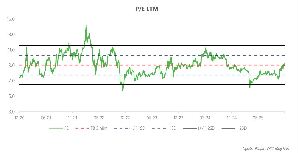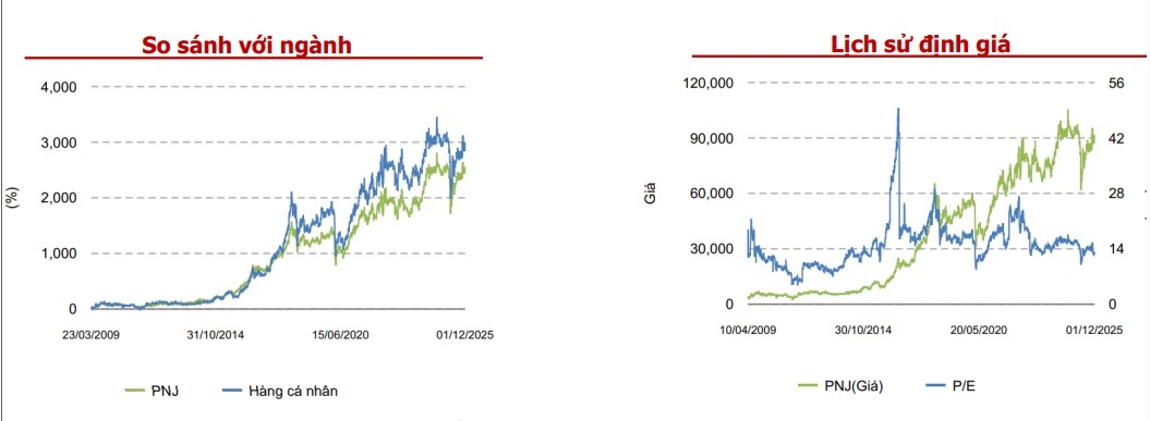 Agriseco Research cho rằng, PNJ có thể tiếp tục cải thiện KQKD trong mùa cao điểm cuối năm và cả năm 2026 nhờ được tháo gỡ nút thắt về nguồn cung. Với mặt bằng định giá ở mức thấp so với quá khứ (P/E ~ 13,3x; P/B ~ 2,6x, Agriseco khuyến nghị nắm giữ đối với cổ phiếu PNJ với giá mục tiêu 100.000 đồng/cổ phiếu (upside 9,2% với giá hiện tại).