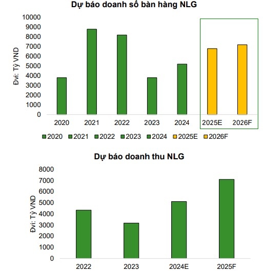 Agriseco kỳ vọng doanh số bán hàng sẽ tiếp tục tăng giúp thúc đẩy KQKD các năm tới khi NLG mở bán thêm sản phẩm mới. Thị trường BĐS ven TP.HCM như Long An, Đồng Nai – nơi tập trung dự án của NLG dự kiến sẽ phục hồi nhờ sự phát triển hạ tầng và sát nhập tỉnh thành.