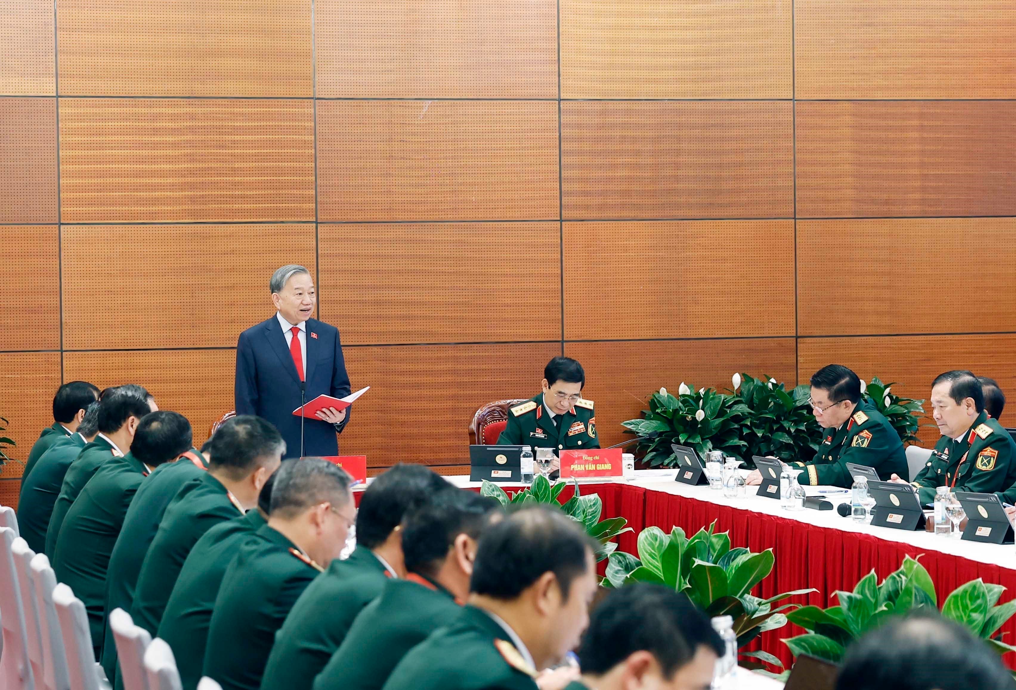 Tổng Bí thư Tô Lâm, Bí thư Quân ủy Trung ương dự phiên thảo luận tại đoàn về các văn kiện Đại hội XIV của Đảng của Đoàn đại biểu Đảng bộ Quân đội