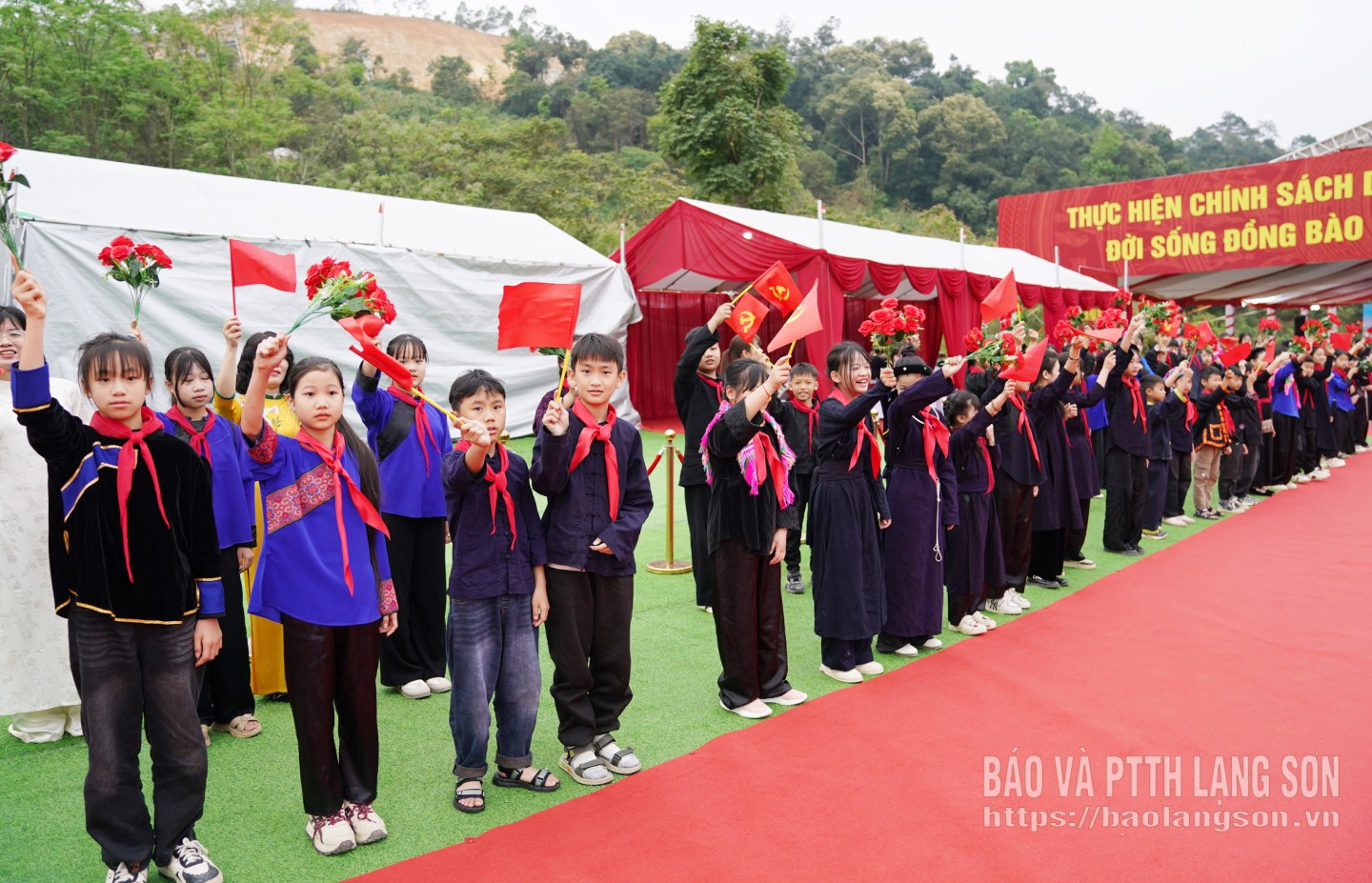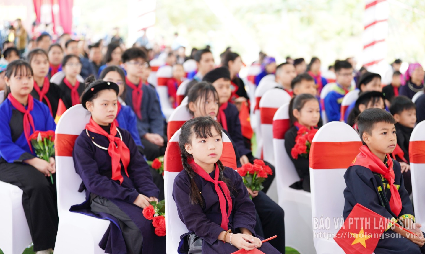 Các em học sinh dự lễ khởi công xây dựng Trường Phổ thông Nội trú liên cấp Tiểu học và THCS Đồng Đăng, xã Đồng Đăng, tỉnh Lạng Sơn