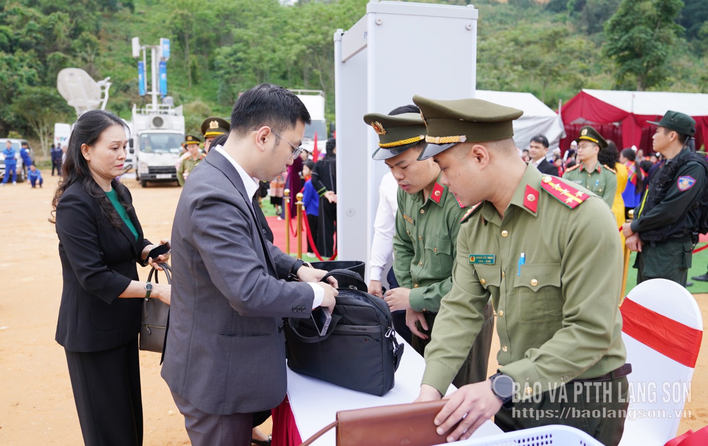 Lực lượng chức năng thực hiện nhiệm vụ kiểm tra đảm an ninh tại lễ khởi công xây dựng Trường Phổ thông Nội trú liên cấp Tiểu học và THCS Đồng Đăng, xã Đồng Đăng, tỉnh Lạng Sơn.