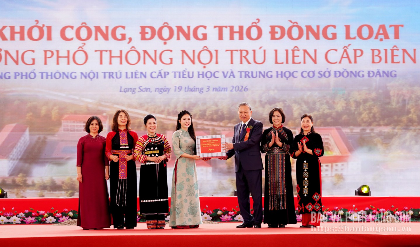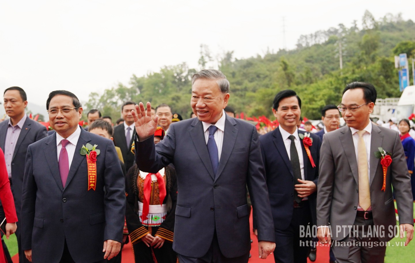 Tổng Bí thư Tô Lâm và Thủ tướng Chính phủ Phạm Minh Chính dự lễ khởi công xây dựng Trường Phổ thông Nội trú liên cấp Tiểu học và THCS Đồng Đăng, xã Đồng Đăng, tỉnh Lạng Sơn.
