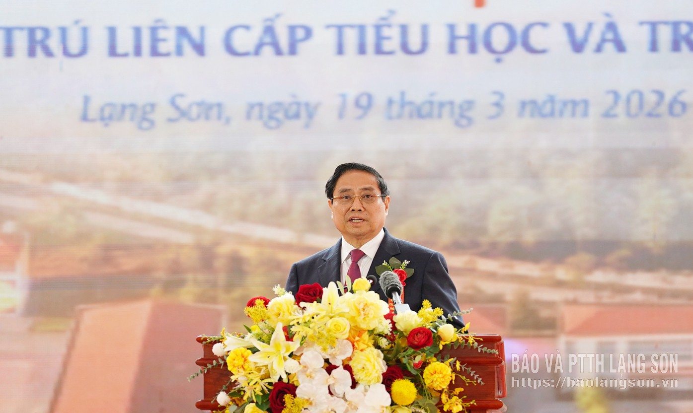 Thủ tướng Chính phủ Phạm Minh Chính phát biểu tại lễ khởi công xây dựng Trường Phổ thông Nội trú liên cấp Tiểu học và THCS Đồng Đăng, xã Đồng Đăng, tỉnh Lạng Sơn