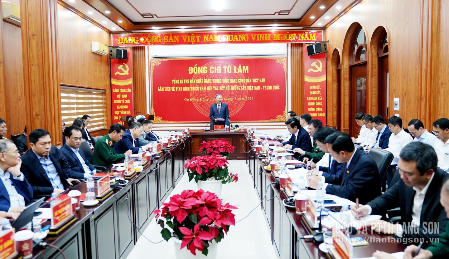 Tổng Bí thư Tô Lâm phát biểu chỉ đạo tại buổi làm việc về tình hình triển khai hợp tác kết nối đường sắt Việt Nam - Trung Quốc