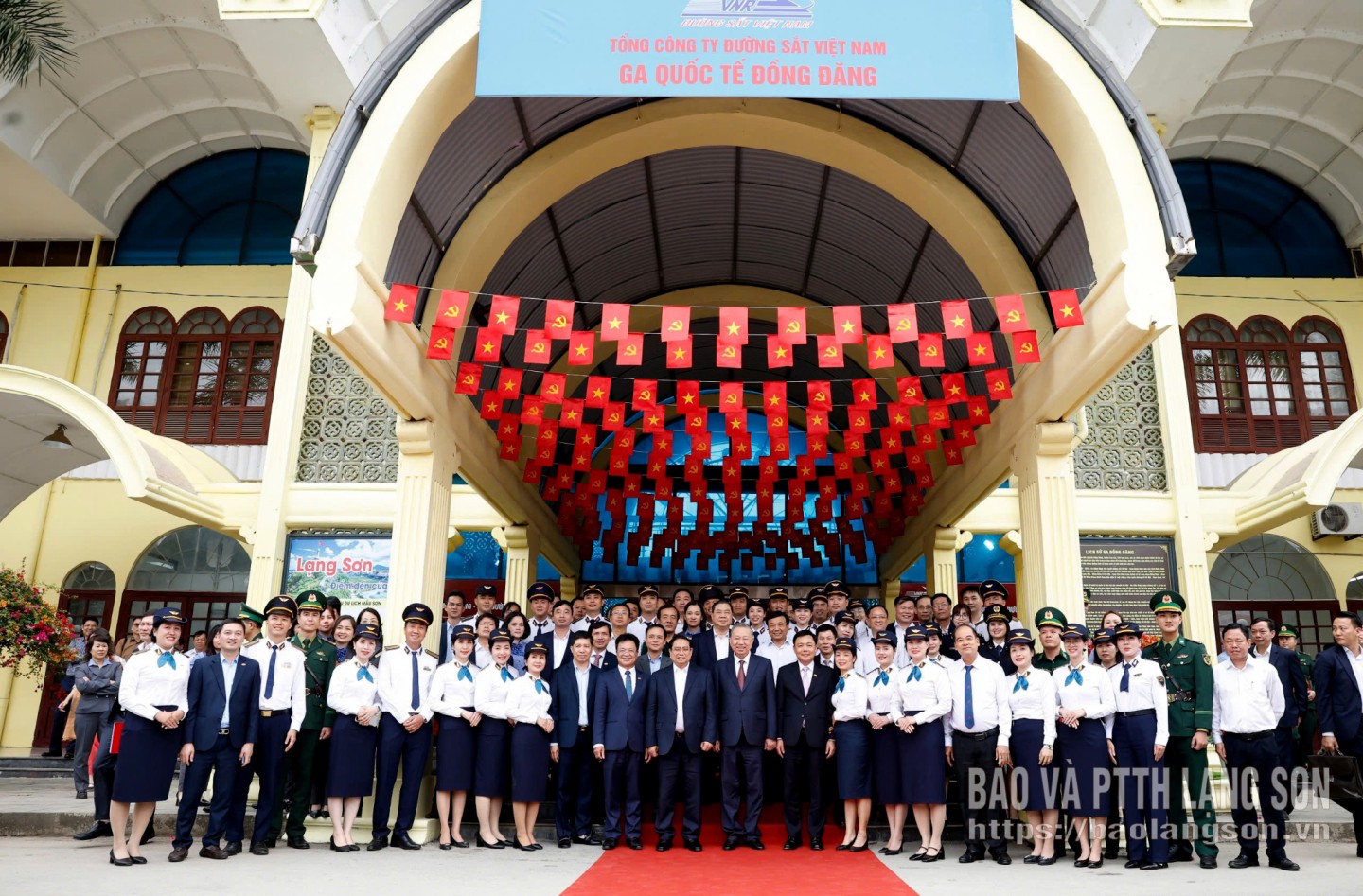 Đồng chí Tổng Bí thư Tô Lâm, Thủ tướng Chính phủ Phạm Minh Chính cùng các đồng chí lãnh đạo các bộ, ngành Trung ương và địa phương khảo sát thực tế tại ga Đồng Đăng