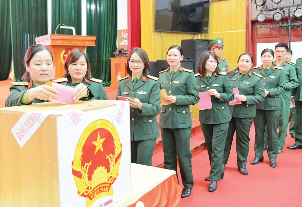 Cử tri bỏ phiếu tại Tổ bầu cử số 46, Bộ Chỉ huy Quân sự tỉnh.