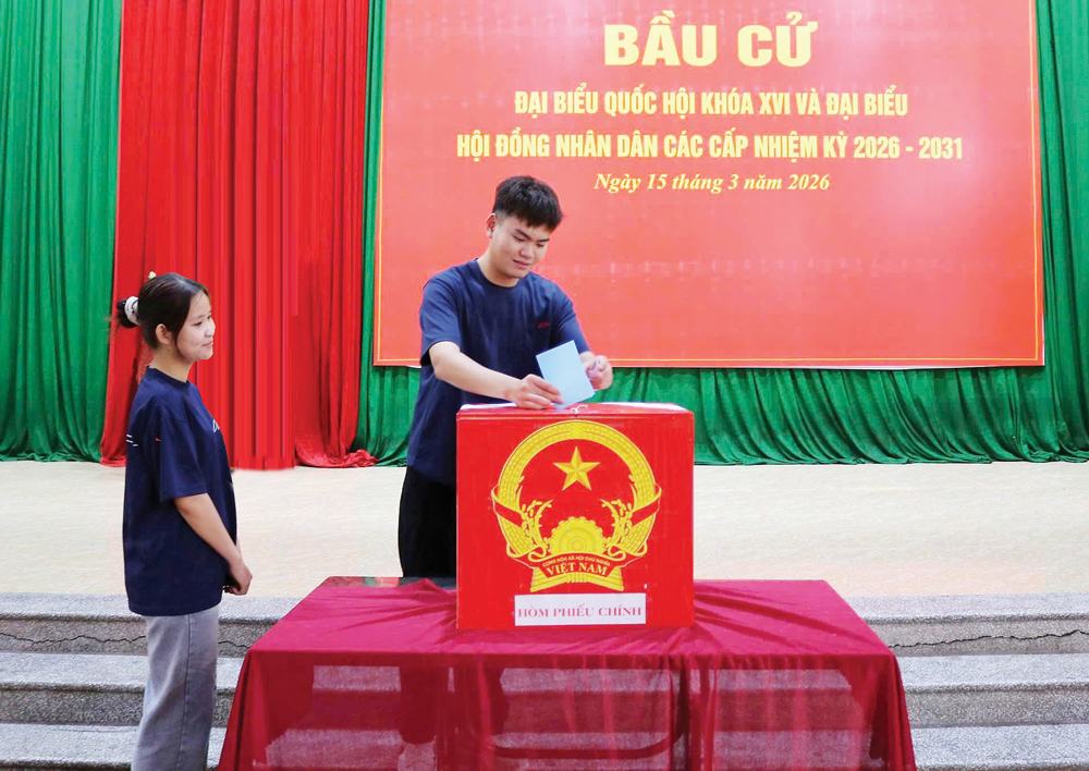 Cử tri bỏ phiếu tại Tổ bầu cử số 12, thôn Mậu, xã Tây Yên Tử.