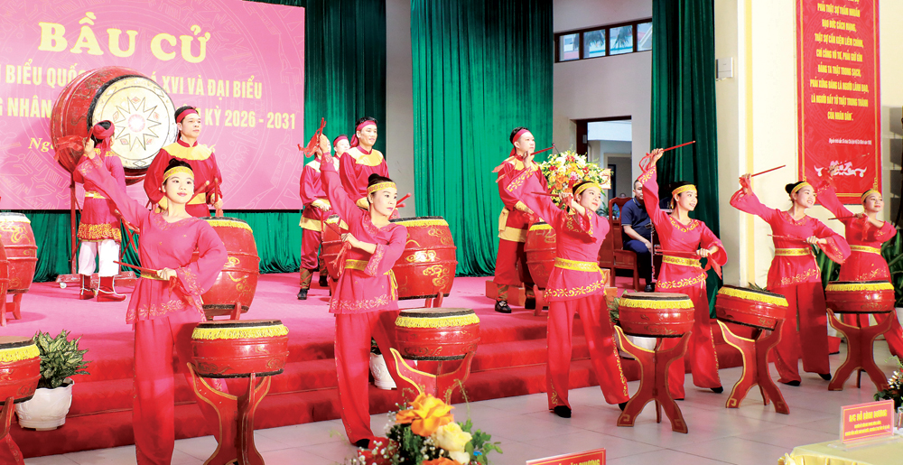 Màn trống khai hội trước giờ khai mạc bầu cử tại Tổ bầu cử số 2, phường Bắc Giang.