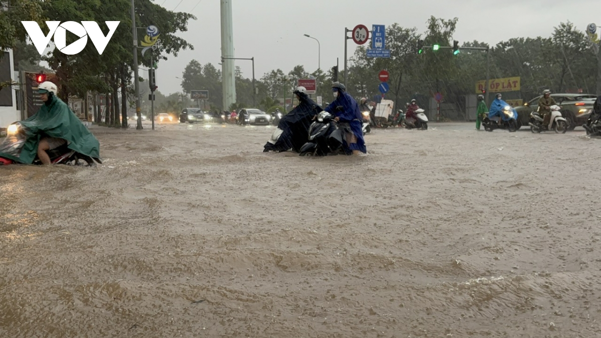 ... mưa lớn không dứt khiến các phương tiện di chuyển khó khăn.