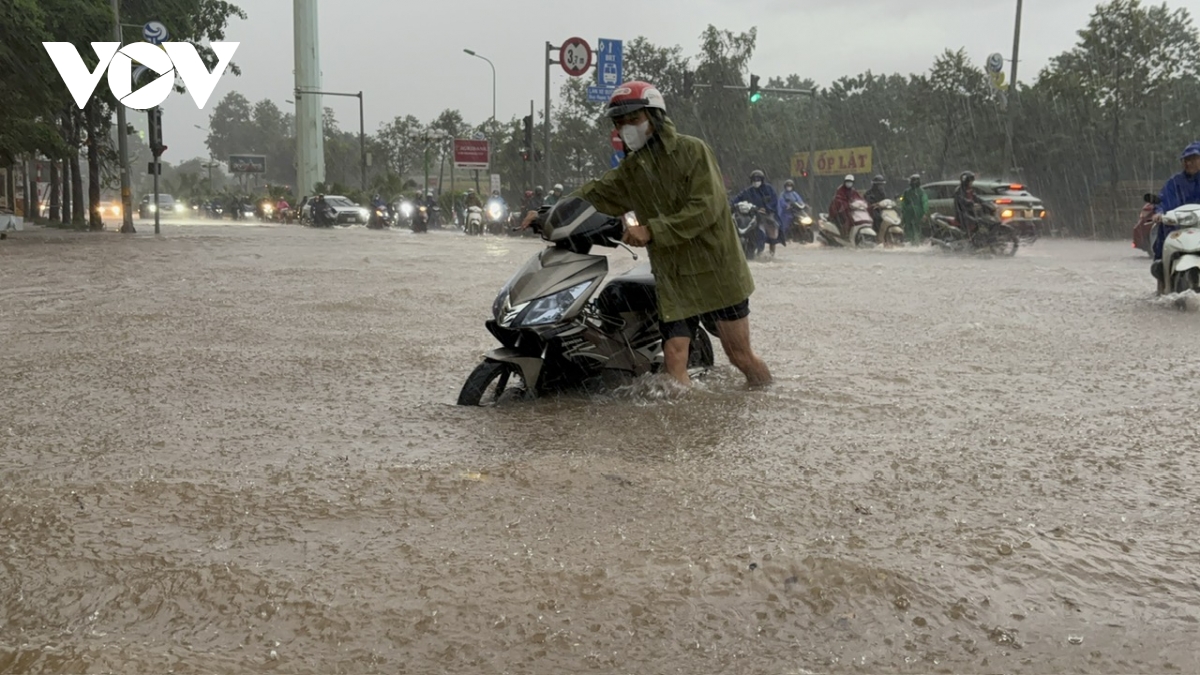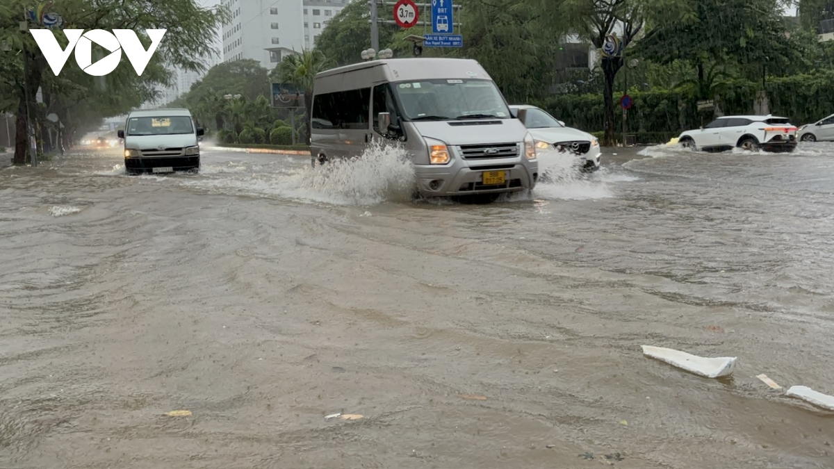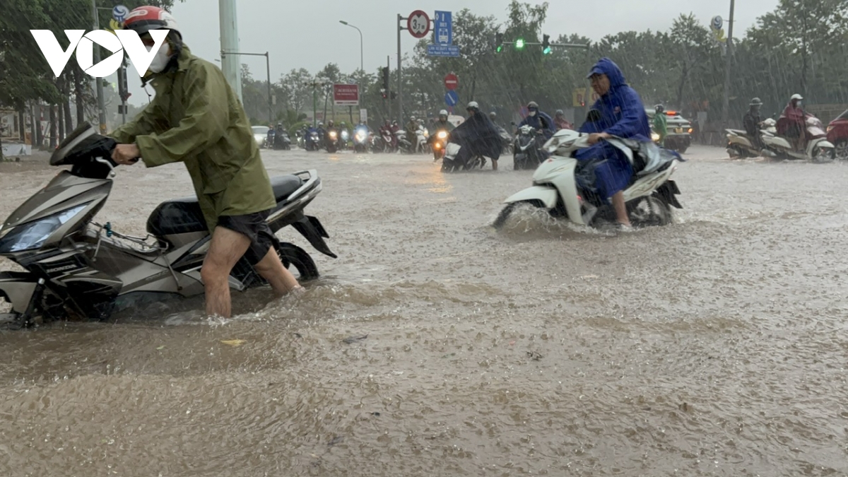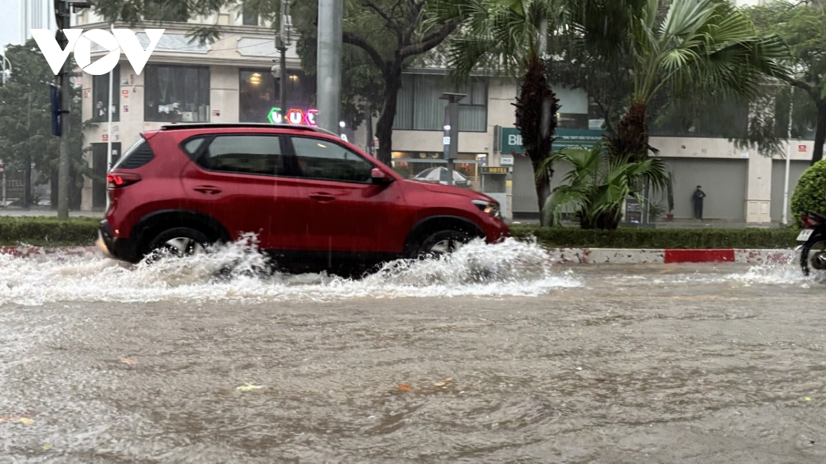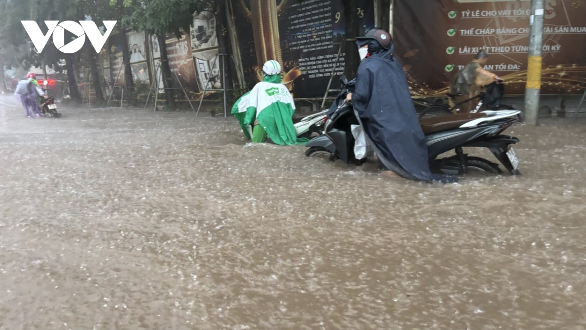Ghi nhận của phóng viên Báo Điện tử Tiếng nói Việt Nam tại các tuyến đường như: Lê Văn Lương, Nguyễn Trãi, phố Triều Khúc, Nguyễn Xiển, Vũ Trọng Khánh, mực nước ngập dao động từ 50cm-1m, có nơi lên trên 1m.