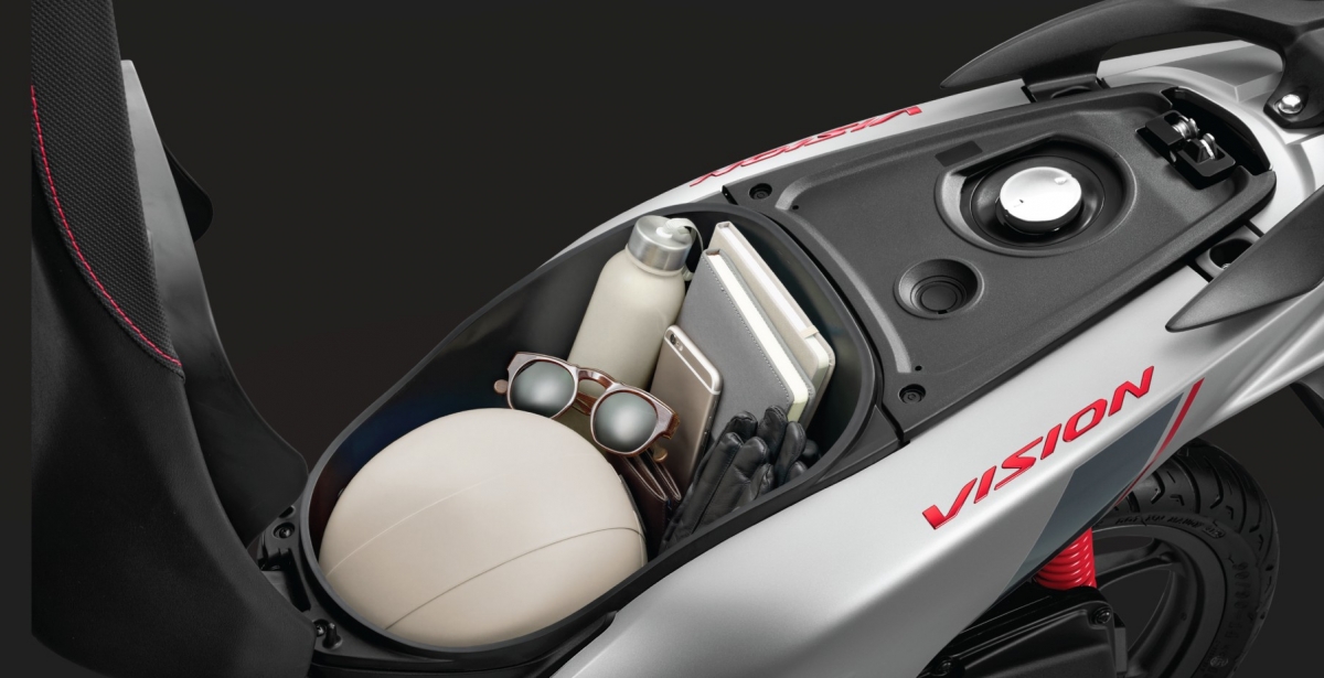 Honda Vision 2026 được trang bị các tiện ích cơ bản đáp ứng nhu cầu người dùng phổ thông như: Hệ thống khóa thông minh Smart Key, cốp chứa đồ dung tích lớn, hộc đồ phía trước có nắp đậy và tích hợp cổng sạc USB Type-C, mặt đồng hồ kết hợp giữa dạng analog truyền thống và màn hình LCD, cùng chế độ đèn luôn sáng, hỗ trợ người lái quan sát và nhận diện tốt hơn khi lưu thông.