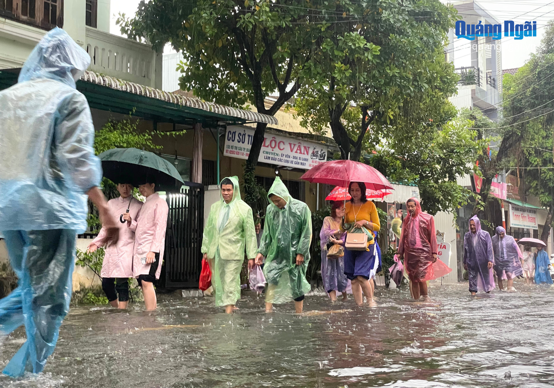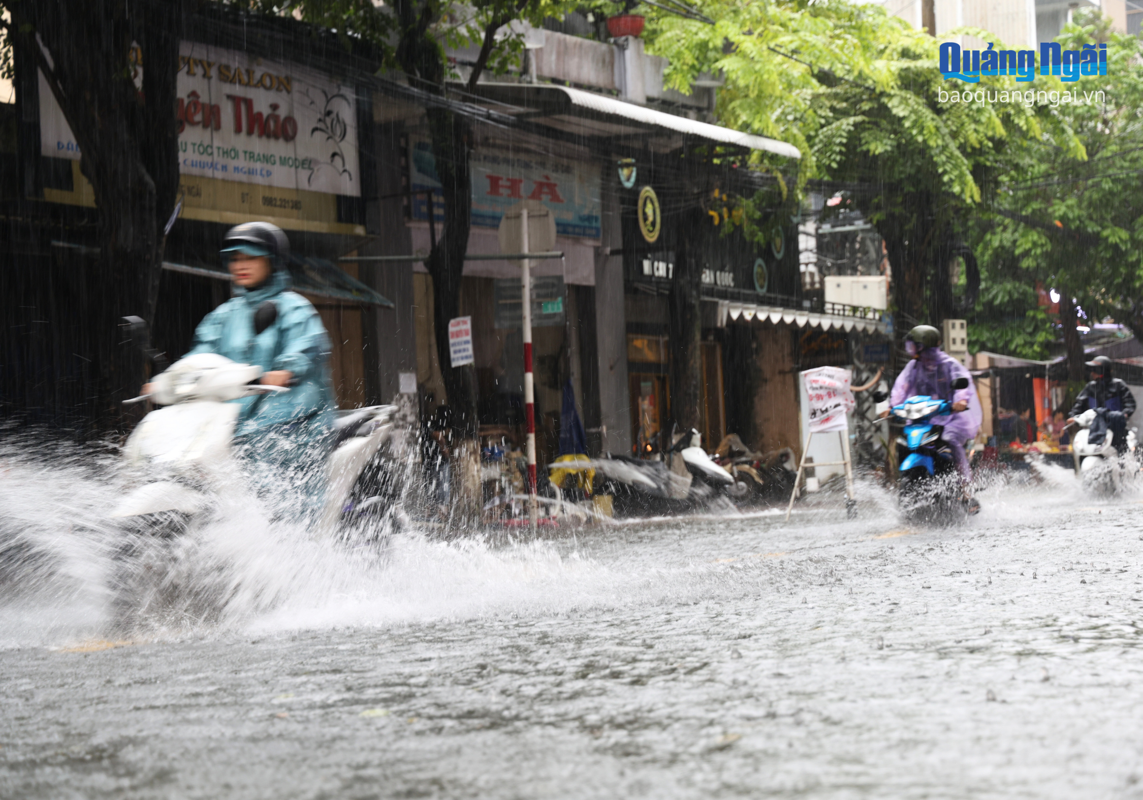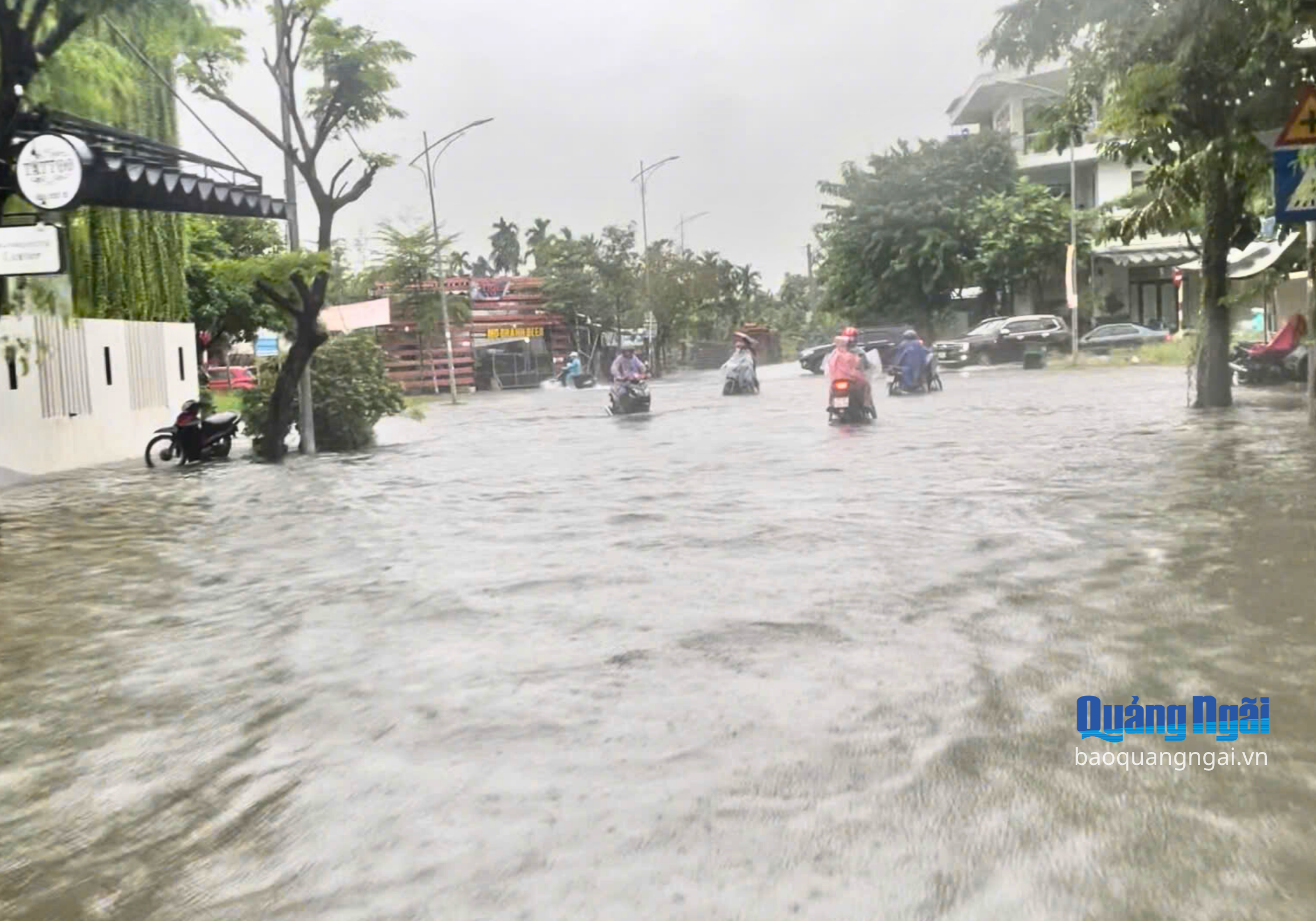Mưa lớn kéo dài khiến nhiều tuyến đường bị ngập nặng như Quang Trung, Võ Thị Sáu, Huỳnh Thúc Kháng, Phan Đình Phùng, có đoạn ngập gần 0,5m. Mưa lớn, tầm nhìn hạn chế, cộng thêm ngập nước khiến việc tham gia giao thông trên các tuyến đường này gặp khó khăn. Nhiều người dân phải dắt bộ hoặc gửi xe để lội bộ về nhà trong mưa.