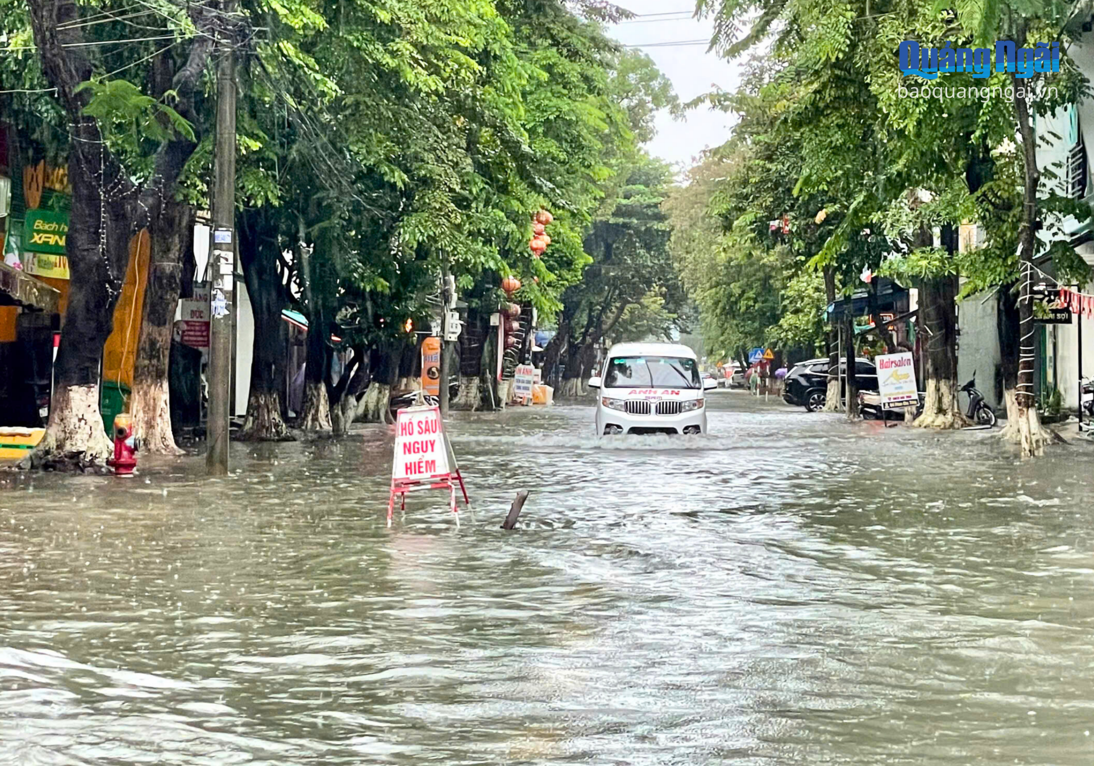 Tương tự, tại các tuyến đường Trần Hưng Đạo, Hùng Vương, Huỳnh Công Thiệu, Phan Chu Trinh... cũng xảy ra ngập nặng.