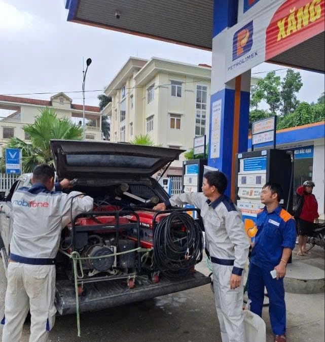 MobiFone tại Thái Nguyên sẵn sàng tiếp nhiên liệu cho các trạm BTS. Ảnh: MBF