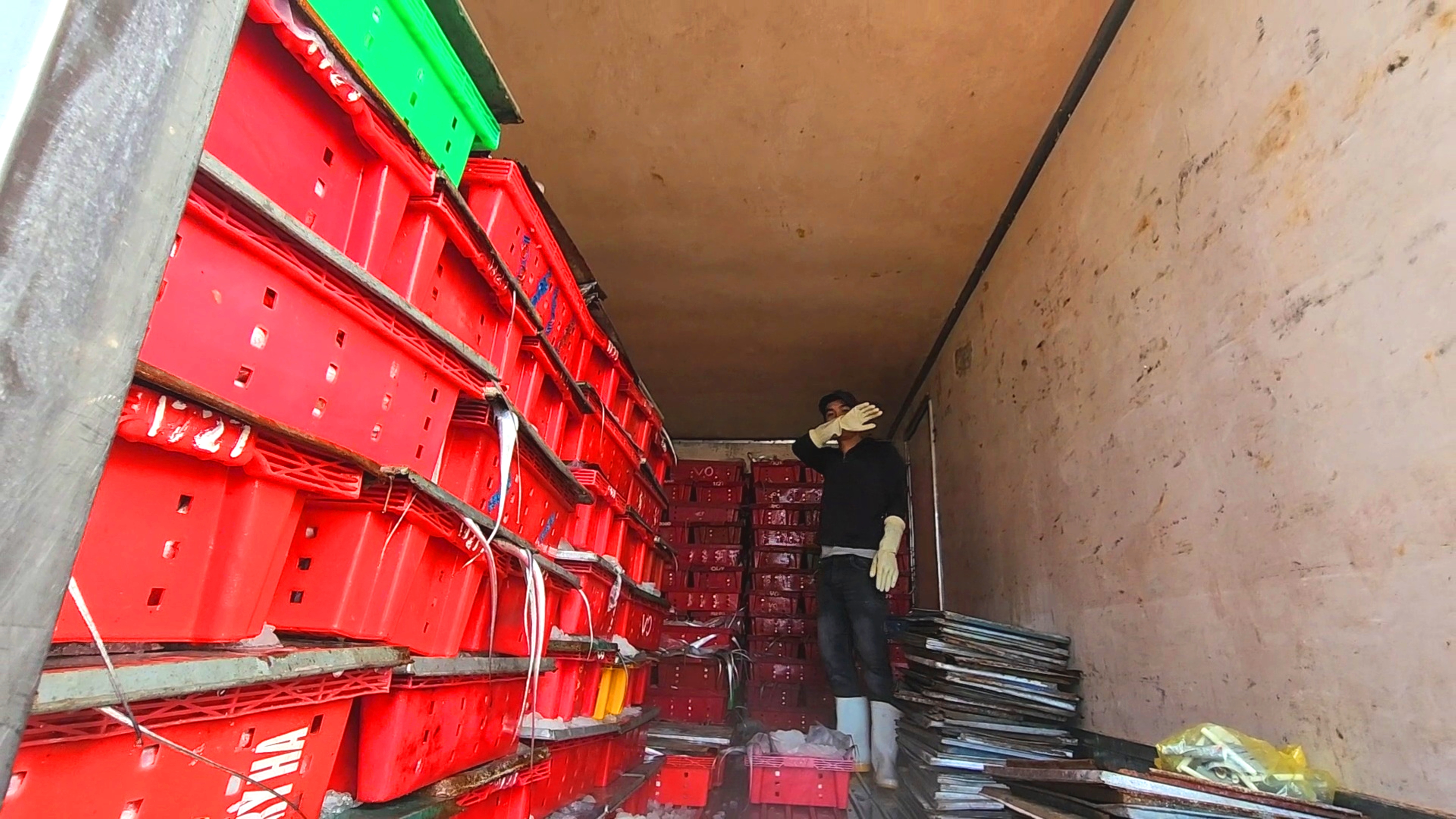 Cá hố được sắp xếp lên thùng xe tải đông lạnh đưa đi tiêu thụ