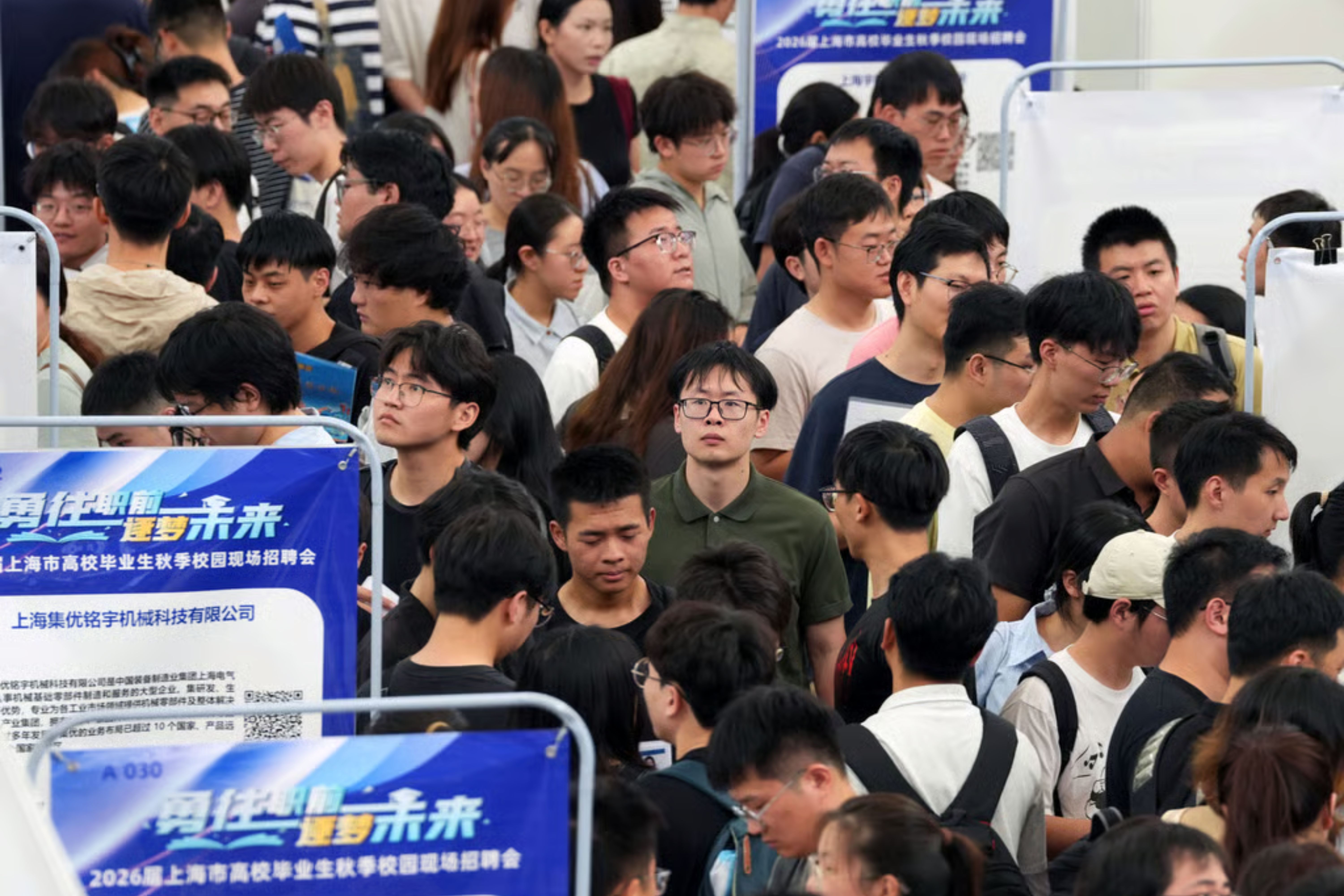 Sinh viên tốt nghiệp đại học tham dự hội chợ việc làm tại trường đại học ở Thượng Hải, Trung Quốc, vào mùa hè này. Ảnh: Xinhua.