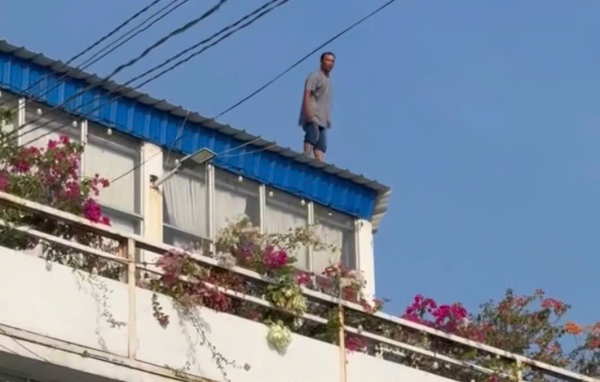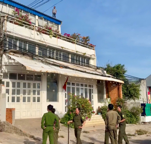 Trước đó, người dân phát hiện một người đàn ông đứng trên mái của căn nhà 3 tầng ở khu vực Làng chài Mũi Né, phường Mũi Né. Người này có hành vi mất kiểm soát, di chuyển qua lại ở vị trí rất nguy hiểm và có biểu hiện nghi ngáo đá.