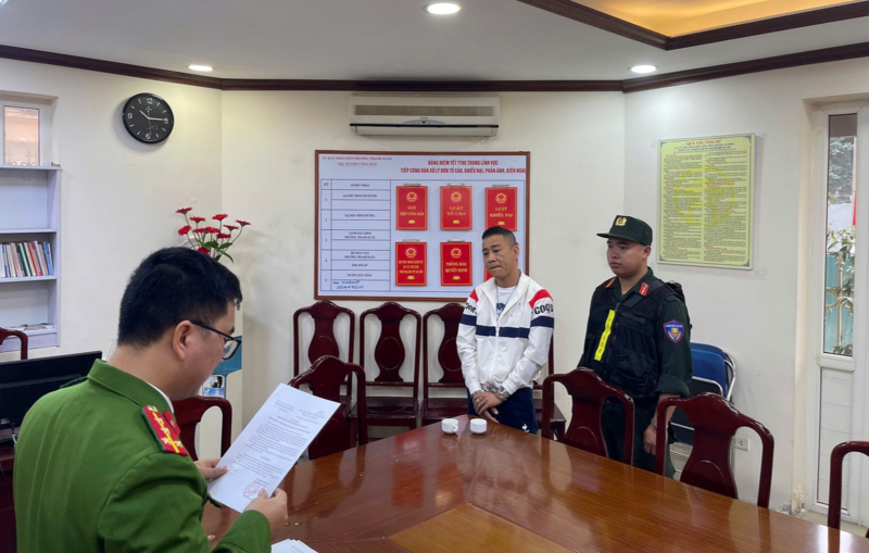Cơ quan Cảnh sát điều tra thi hành Lệnh bắt bị can để tạm giam đối với Lê Anh Tuấn. Ảnh: Bộ Công an