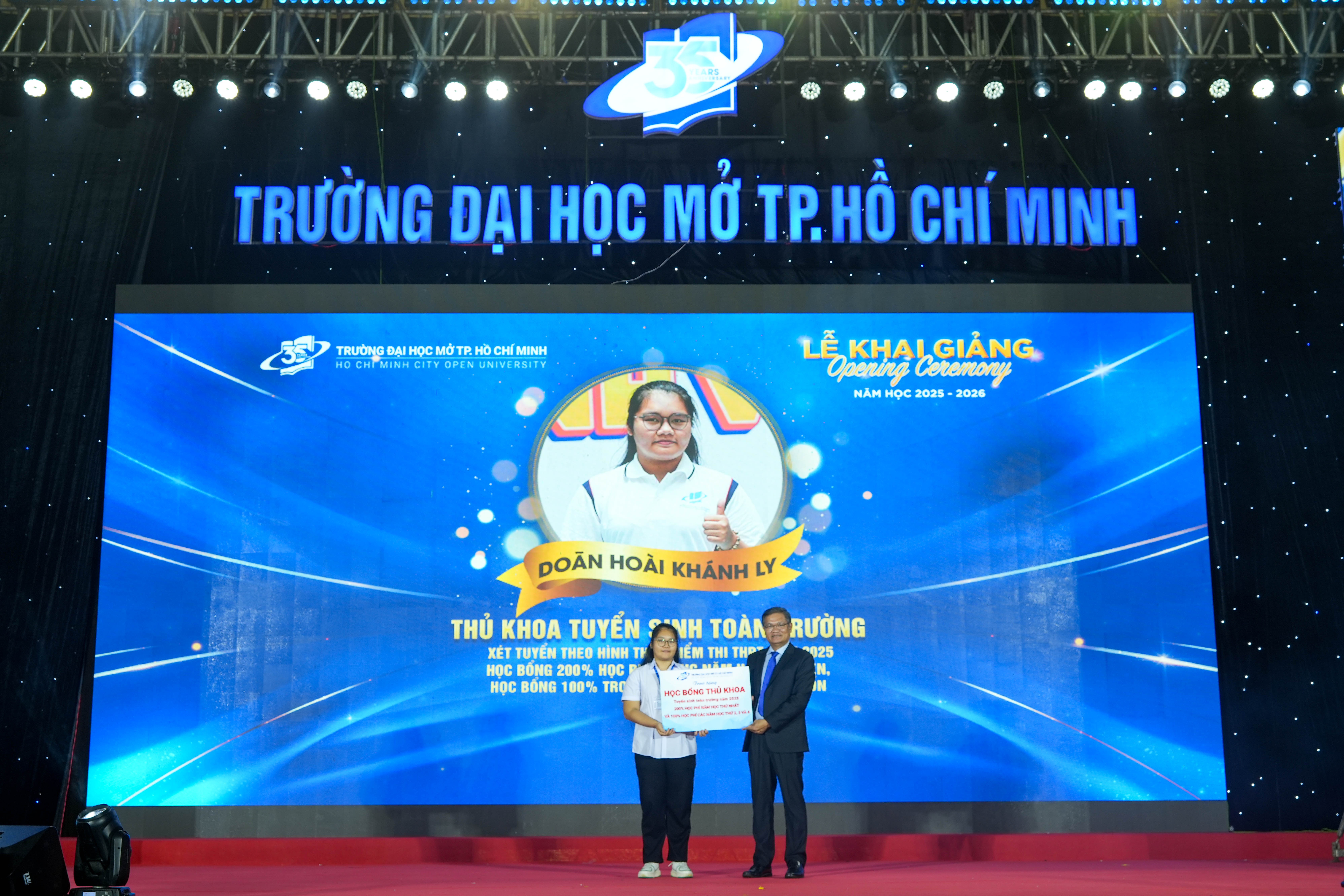 Bên cạnh đó, Đại học Mở TP.HCM còn trao 279 suất học bổng khuyến khích học tập cho tân sinh viên năm nhất, với các mức hỗ trợ tương ứng 100%, 70% và 50% học phí học kỳ một.