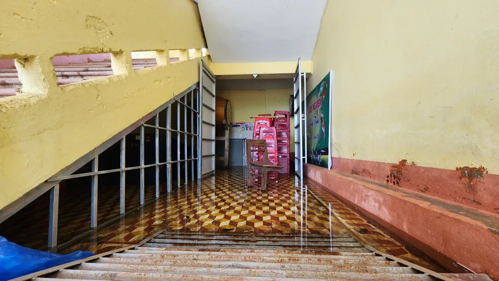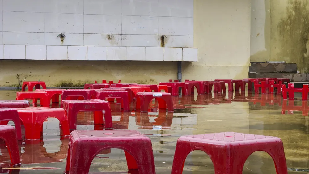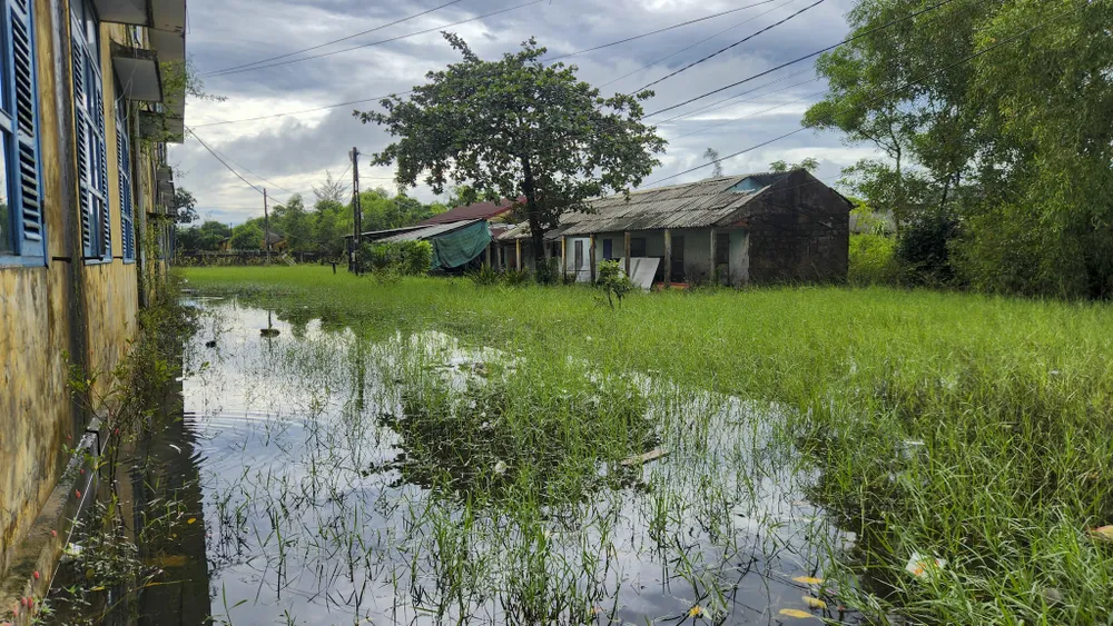 "Cứ mưa lớn là sân trường bị ngập, riêng đợt này nước ngập trong sân trường kéo dài đã khoảng 1 tuần. Hôm 17-10 nhà trường phải lấy ghế tạo thành lối đi để các em học sinh đi sang khu nhà vệ sinh" - chị NNT (ở Thôn 5, xã Cửa Việt) nói.