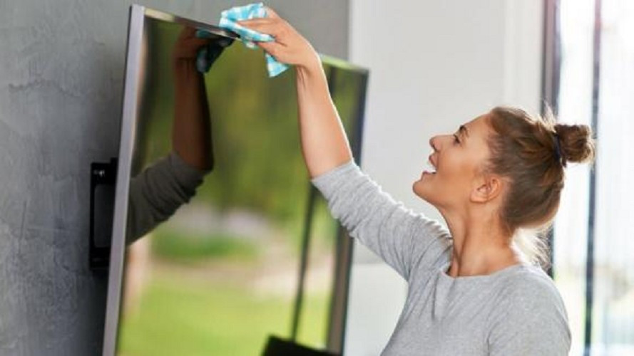 Việc lau bụi nhẹ mỗi tuần giúp TV sạch sẽ và phòng khách gọn gàng hơn.