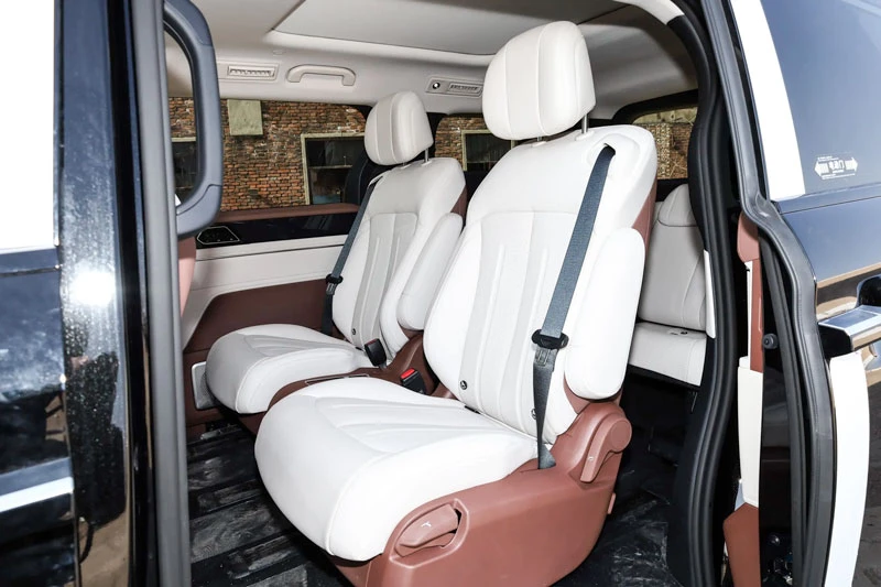 Khoang hành khách được bố trí 2+2+3, với ghế trước có sưởi, thông gió, massage và nhớ vị trí, ghế thuyền trưởng hàng hai có bàn gập và tựa chân, cùng hệ thống âm thanh tích hợp trên tựa đầu. Hàng ghế thứ ba có thể gập điện, mở rộng khoang hành lý từ 470 lít lên 2.036 lít. Các bản cao cấp còn được trang bị tủ lạnh điều nhiệt, màn hình giải trí 15,6 inch phía sau và cửa sổ trời toàn cảnh hai phần.