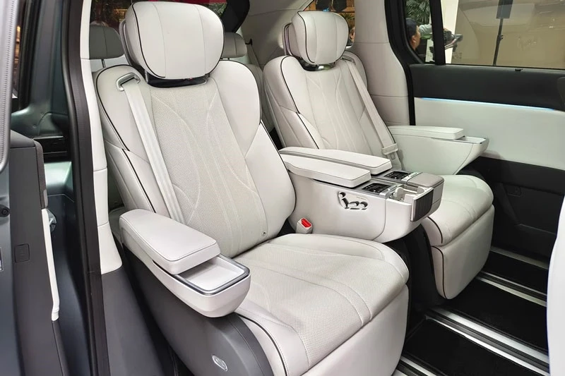 Hàng ghế thứ hai có thể chỉnh điện 18 hướng, trong khi hàng ghế thứ ba gập phẳng bằng điện, mở rộng không gian chứa đồ từ 755 lít lên đến 2.554 lít. Nội thất được trang bị hàng loạt tiện nghi cao cấp như màn hình kỹ thuật số 10,25 inch, màn hình giải trí trung tâm 17,3 inch sử dụng chip Qualcomm Snapdragon 8295, hệ thống âm thanh Xopera 23 loa, tủ lạnh có khả năng sưởi và làm mát từ 0 đến 50°C, cùng màn hình gắn trần 21,4 inch phục vụ nhu cầu giải trí cho hàng ghế sau.