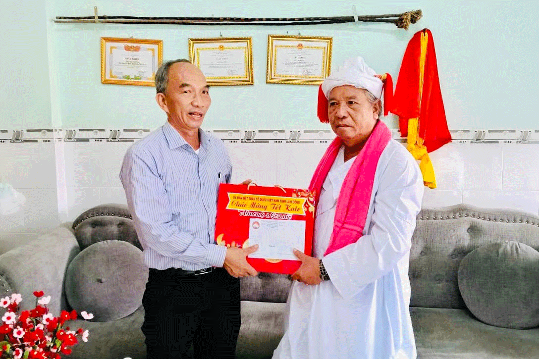 Đoàn thăm và chúc Tết Katê Sư cả Huỳnh Cứng, Phó Chủ tịch Hội đồng chức sắc Bàlamôn giáo tỉnh tại xã Bắc Bình