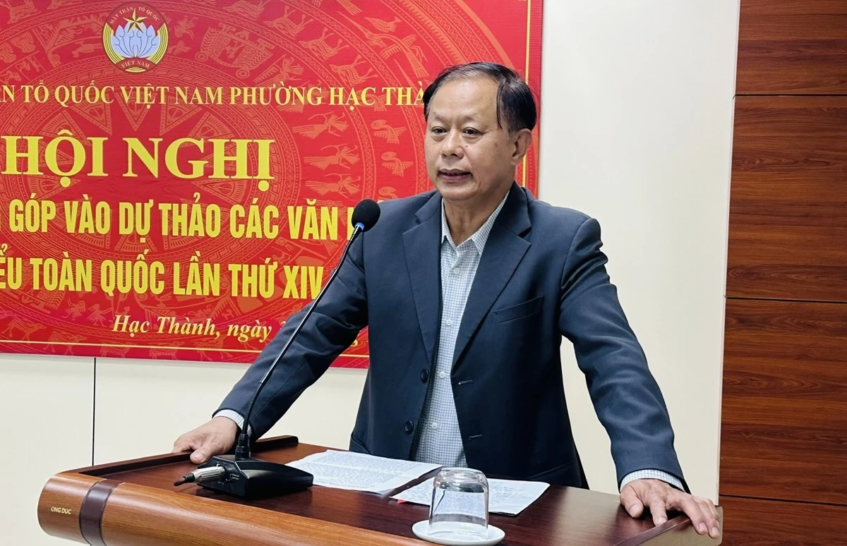 Tại hội nghị, lãnh đạo Ủy ban MTTQ phường Hạc Thành đã gợi ý các nội dung cụ thể để các đại biểu tham gia góp ý vào dự thảo Báo cáo chính trị trình Đại hội đại biểu toàn quốc lần thứ XIV của Đảng; dự thảo Báo cáo tổng kết một số vấn đề lý luận và thực tiễn về công cuộc đổi mới theo định hướng XHCN trong 40 năm qua ở Việt Nam; dự thảo Báo cáo tổng kết 15 năm thi hành Điều lệ Đảng (2011-2025) và đề xuất, định hướng bổ sung, sửa đổi Điều lệ Đảng.