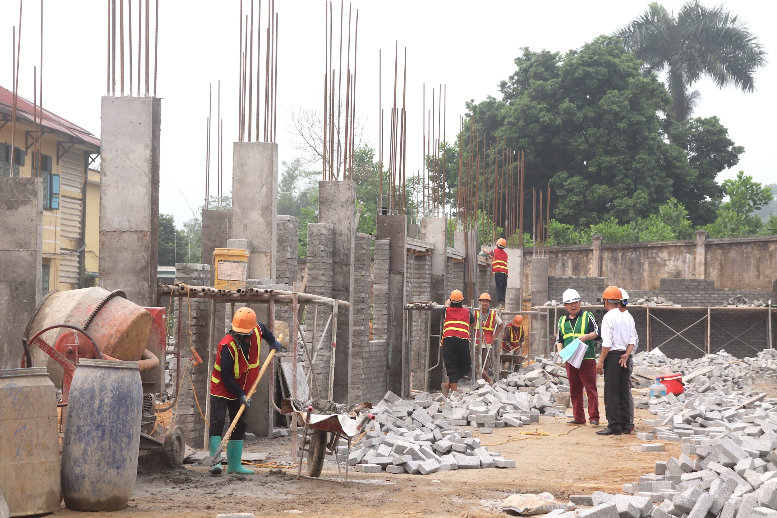 Đại diện Ban Giám sát đầu tư của cộng đồng xã Yên Xuân giám sát tại công trình cải tạo, nâng cấp Trường Tiểu học Đông Xuân. Ảnh: Hiền Chi