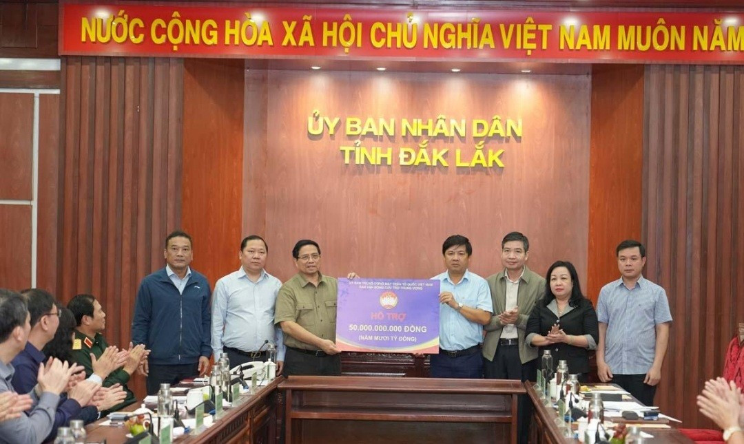 Ban Vận động Cứu trợ Trung ương - Ủy ban Trung ương MTTQ Việt Nam tiếp tục phân bổ số tiền 150 tỷ đồng hỗ trợ 4 tỉnh Khánh Hòa, Đắk Lắk, Gia Lai và Lâm Đồng. (Ảnh: Báo Đắk Lắk)