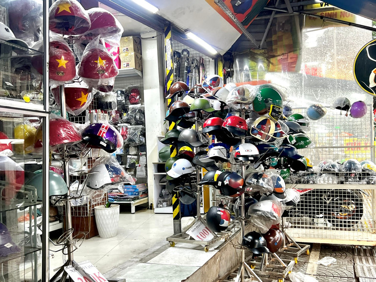 Một cửa hàng bán mũ bảo hiểm trên đường Xô Viết Nghệ Tĩnh.