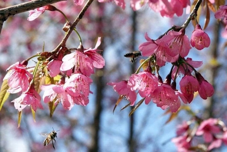 Hoa tớ dày bung nở rực rỡ giữa không gian núi rừng.
