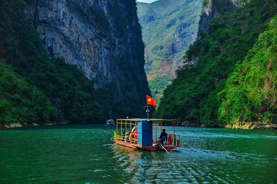 Du khách đi thuyền trên sông Nho Quế, năm 2022. Ảnh: Phạm Tú.