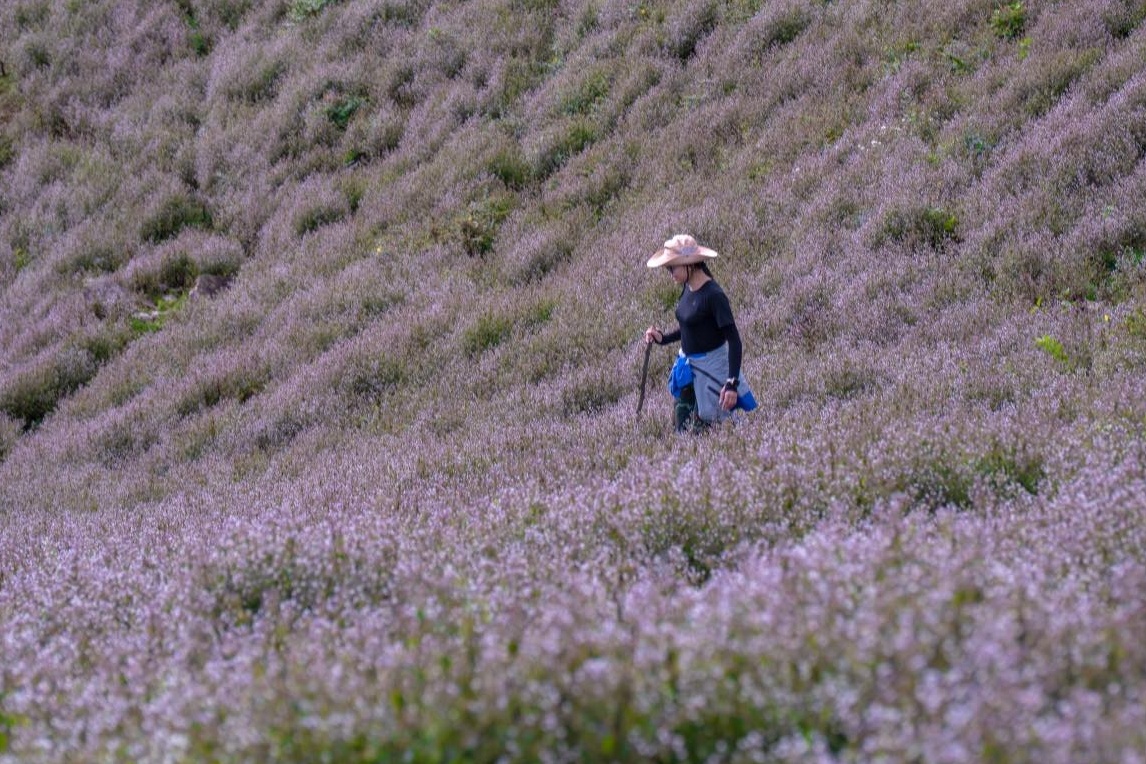 Mưa nhiều khiến hoa Chi Pau ở Tà Chì Nhù "bay màu" tím, chuyển sang màu trắng sau bão. Trước đó, sắc tím rực rỡ của hoa Chi Pau là điểm "ăn khách" của ngọn núi cao thứ 7 Việt Nam. Ảnh: Chiêu Lê.