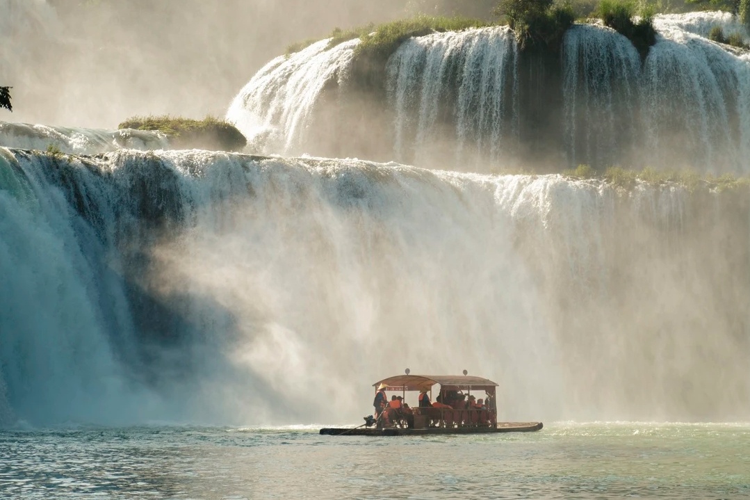 Từ ngày 10/10, thác Bản Giốc đón khách trở lại sau thời gian tạm dừng do ảnh hưởng của hoàn lưu 2 con bão số 10 và 11. Ảnh: Phạm Văn Phong.