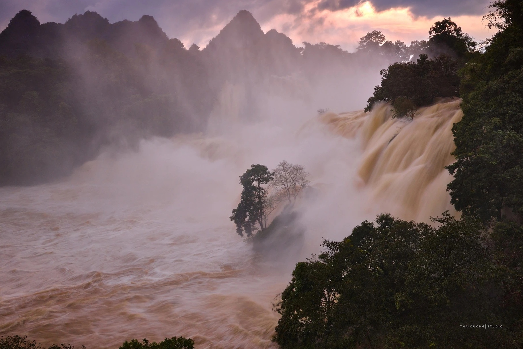 Đầu tháng 10, thác Bản Giốc chảy xiết, nước cuồn cuộn và đục ngầu. Ảnh: Thái Dương.