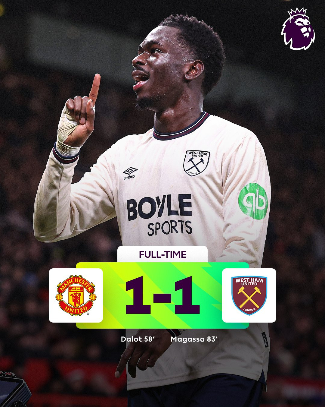 Tuy vậy, MU không bảo toàn được lợi thế, để Magassa gỡ hòa trong một tình huống dàn xếp phạt góc phút 83
