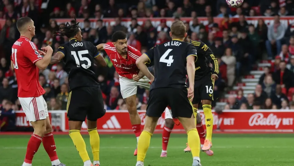 Phút 42, Mbeumo cắt được bóng trong chân của Nottingham rồi chuyền cho Amad Diallo, tiền đạo cánh phải MU đi bóng loại bỏ 3 hậu vệ Nottingham nhưng cú sút cuối cùng lại đưa bóng đi vọt xà.