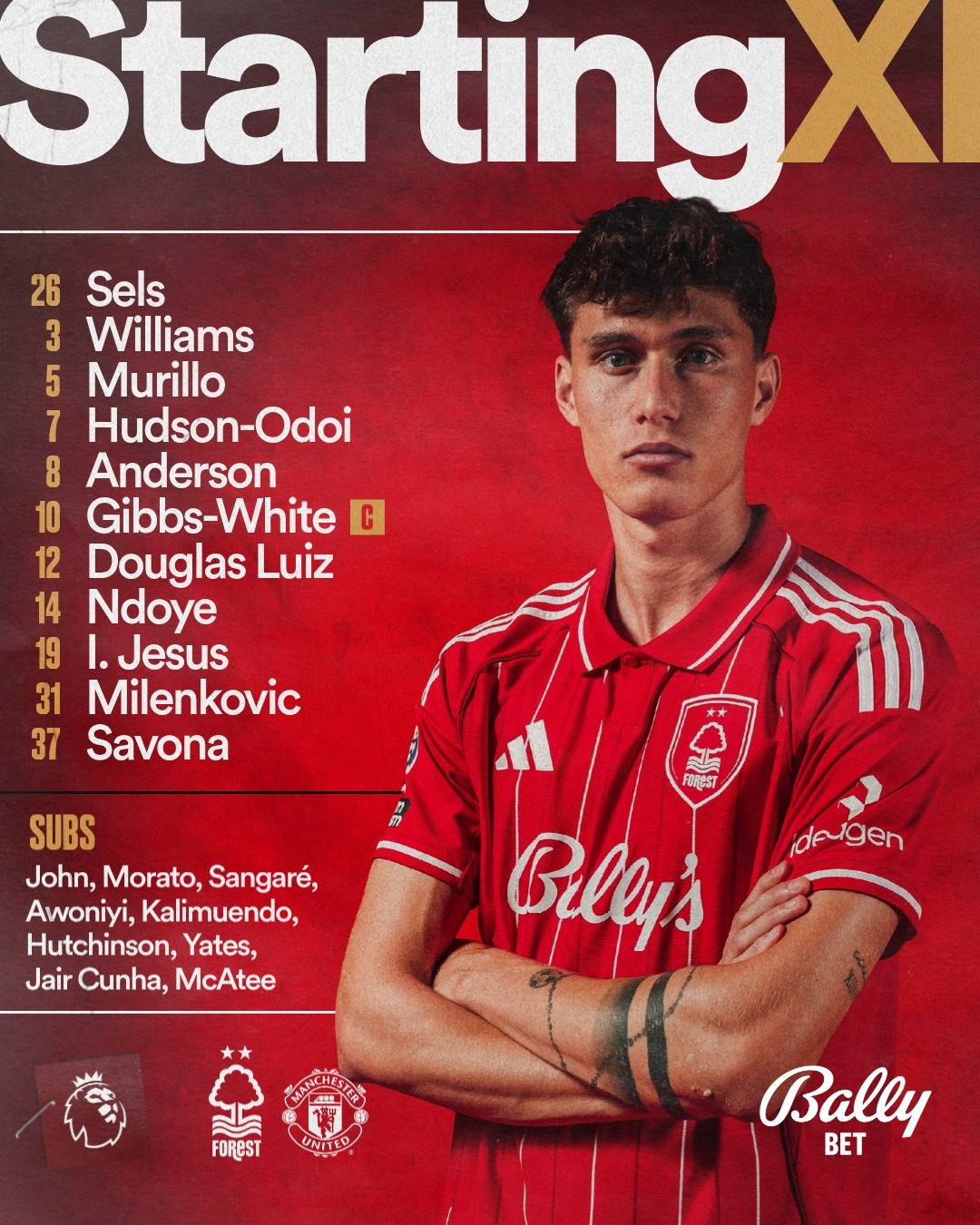 Sels, Williams, Murillo, Hudson-Odoi, Anderson, Gibbs-White, Luiz, Ndoye, Jesus, Milenkovic, Savona.