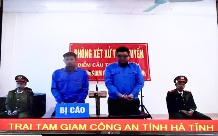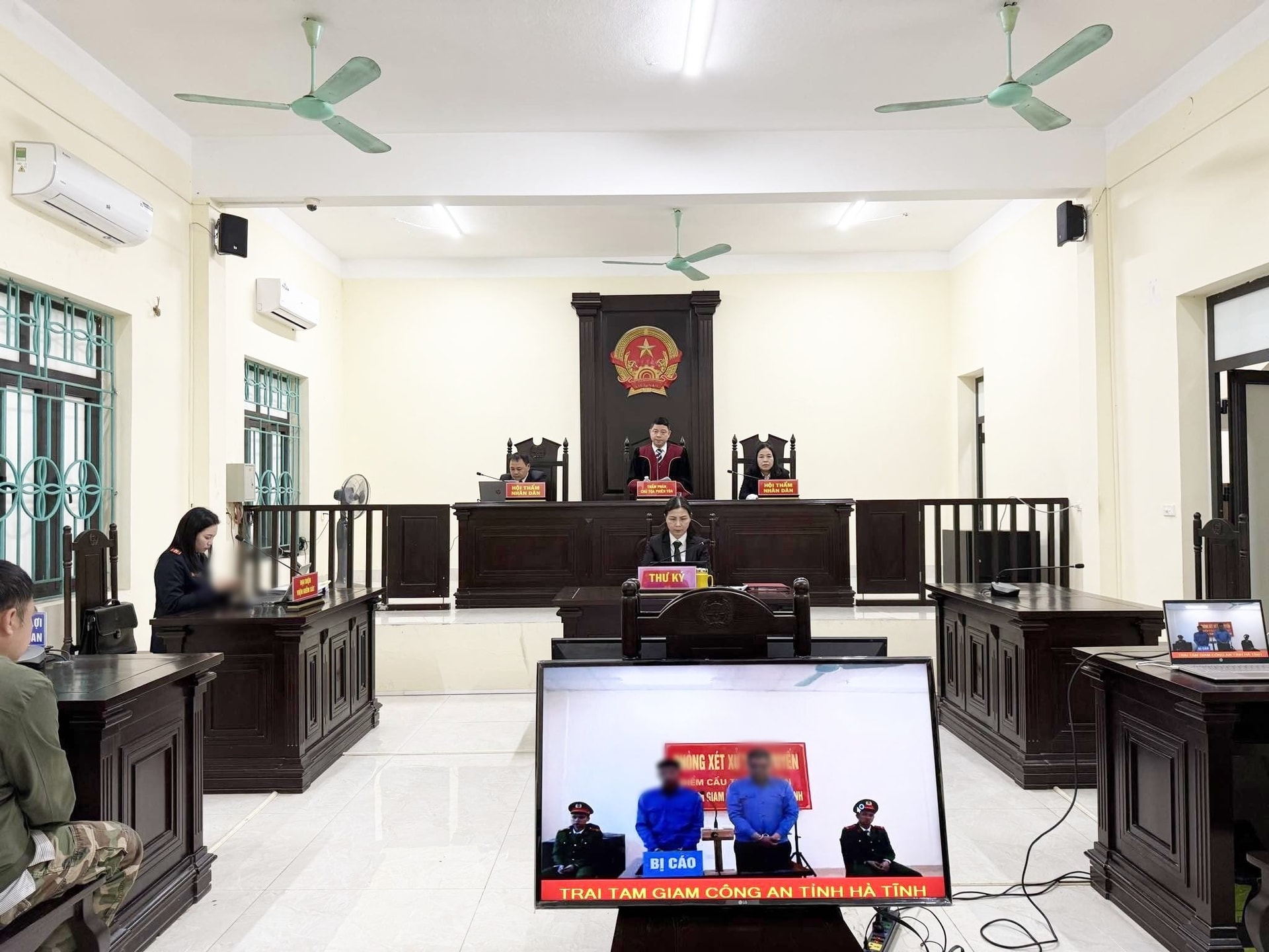 Các bị cáo tại điểm cầu thành phần Trại tạm giam công an tỉnh Hà Tĩnh.